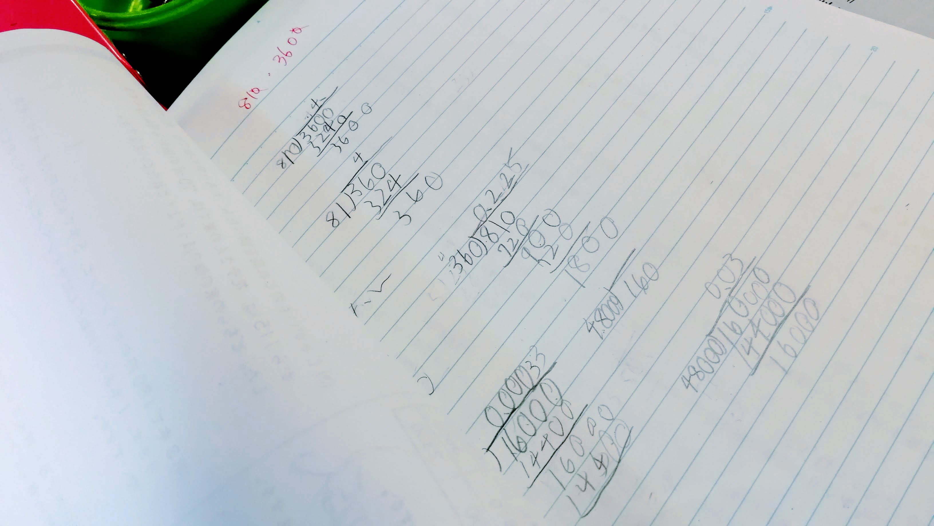 写真のように、「3600÷810」をそのままひっ算に書く人が多く、ゼロだらけのひっ算になっています。