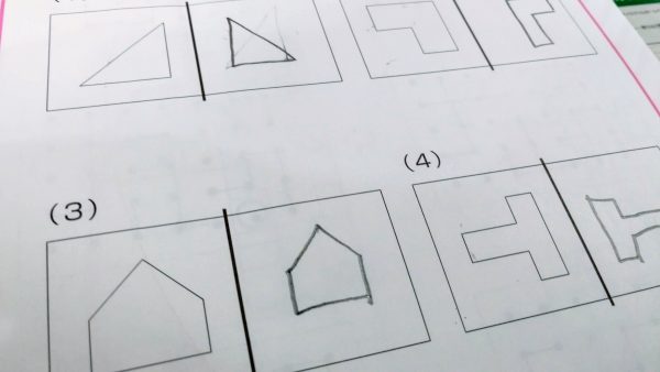 写真の絵は、2年生クラスがやっている空間図形のドリル。