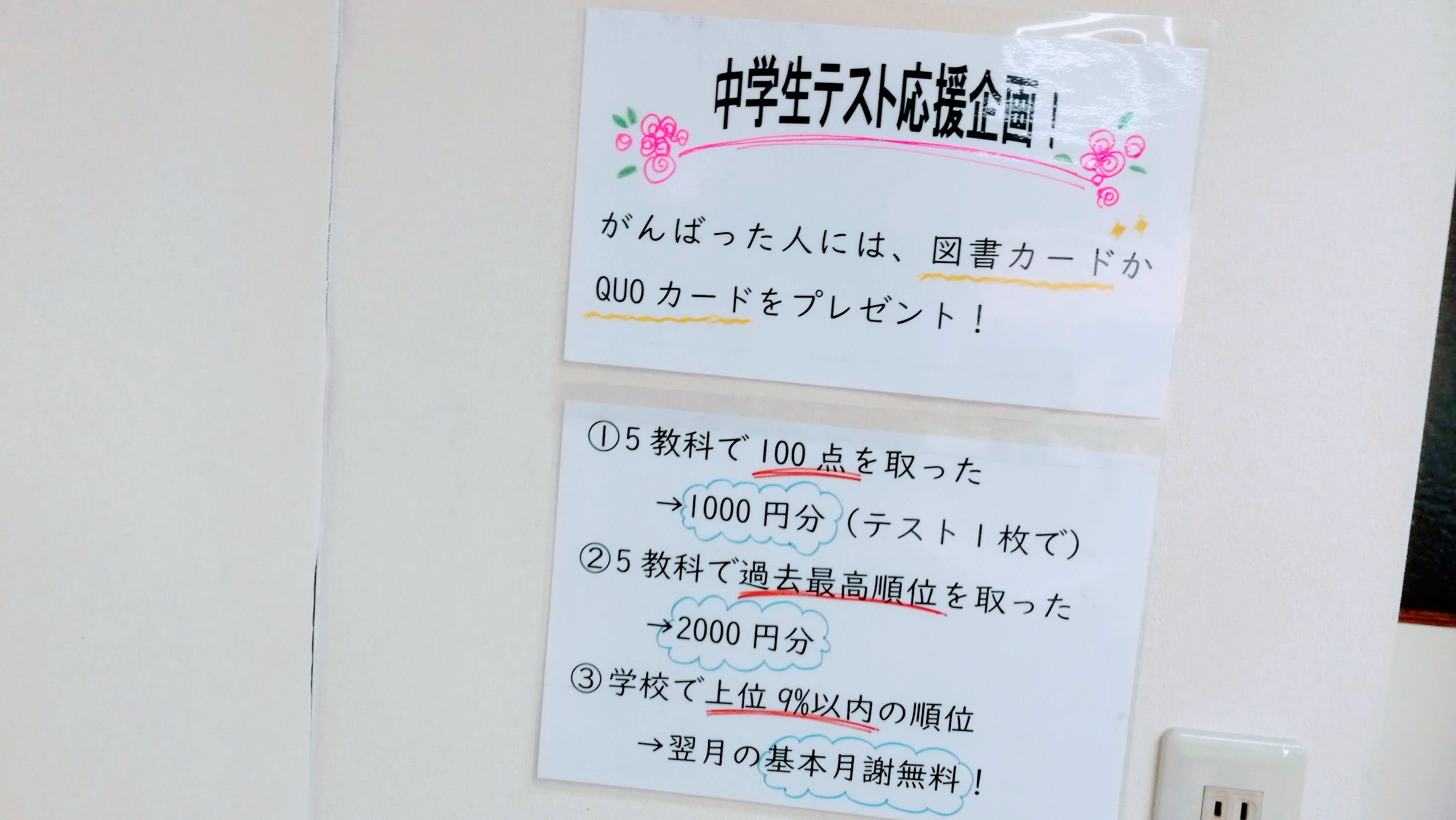中1クラスにて、上位1桁%が出たので、お祝いのお月謝無料です(^^