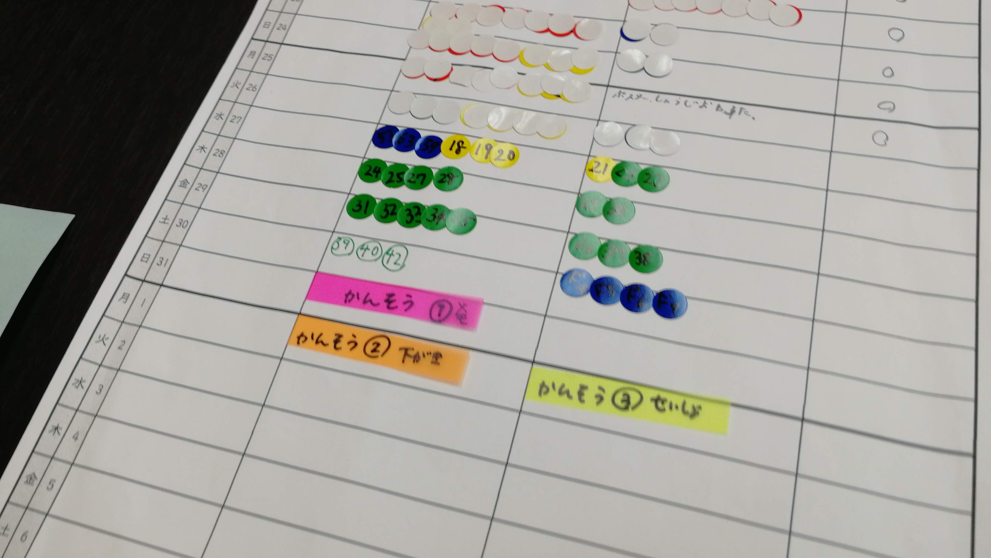 写真は火曜日クラスの予定表。