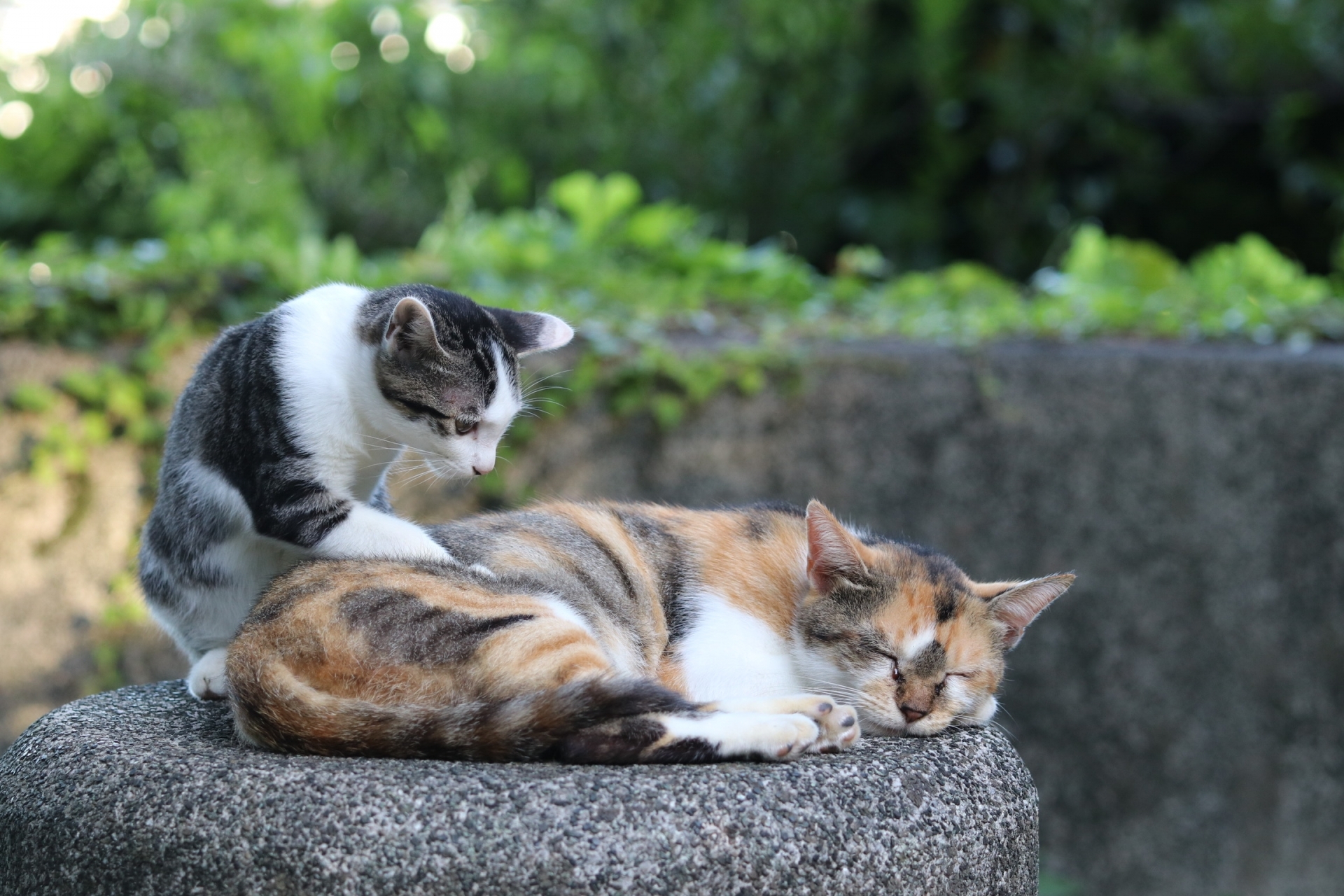 まさにこの写真のネコの親子のように、「お母さん、起きて問題出して!」状態。