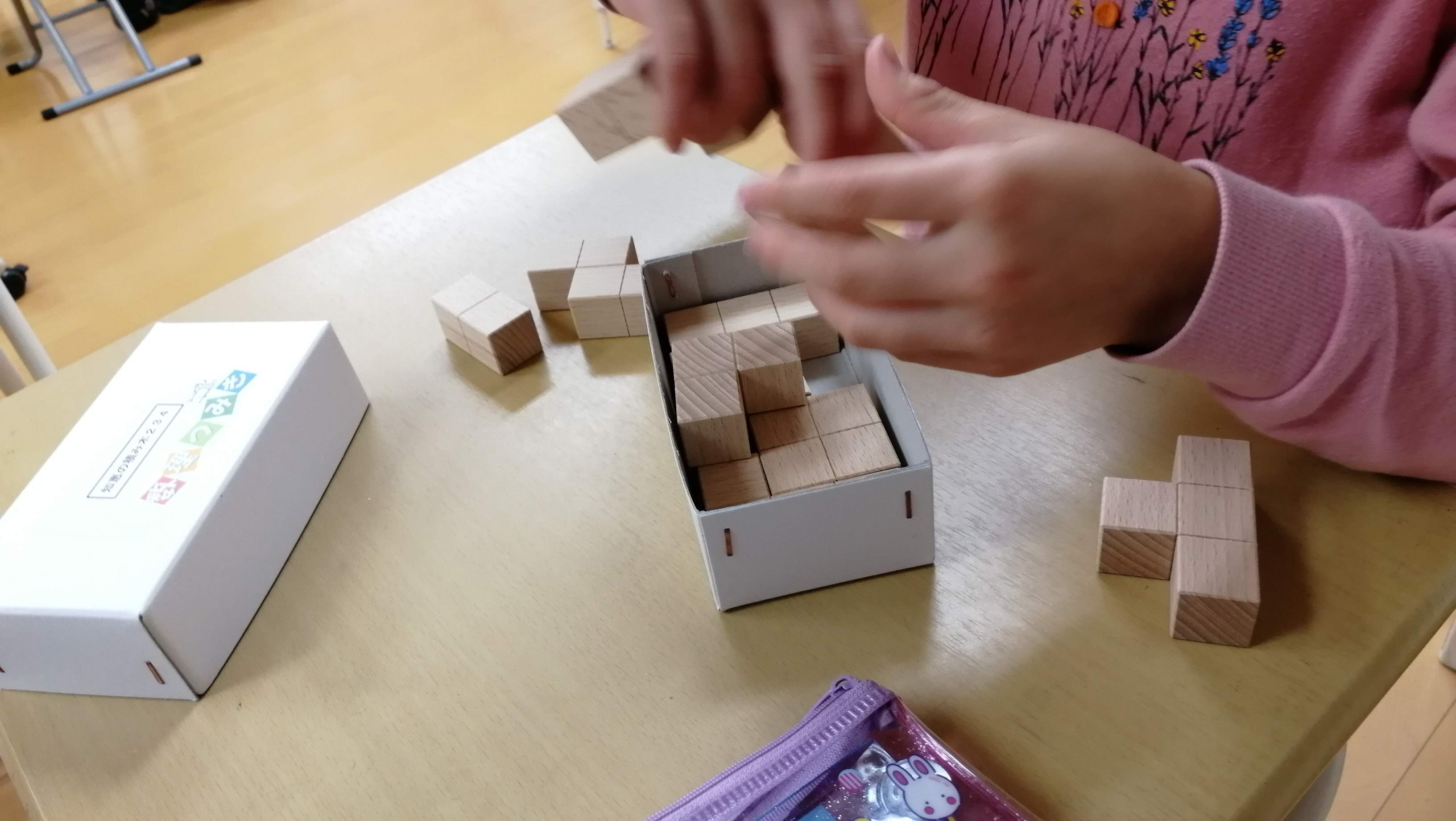 後半チームさんは、立体パズルの箱詰めにチャレンジしてもらったものの、お迎えタイムが来て終了~。