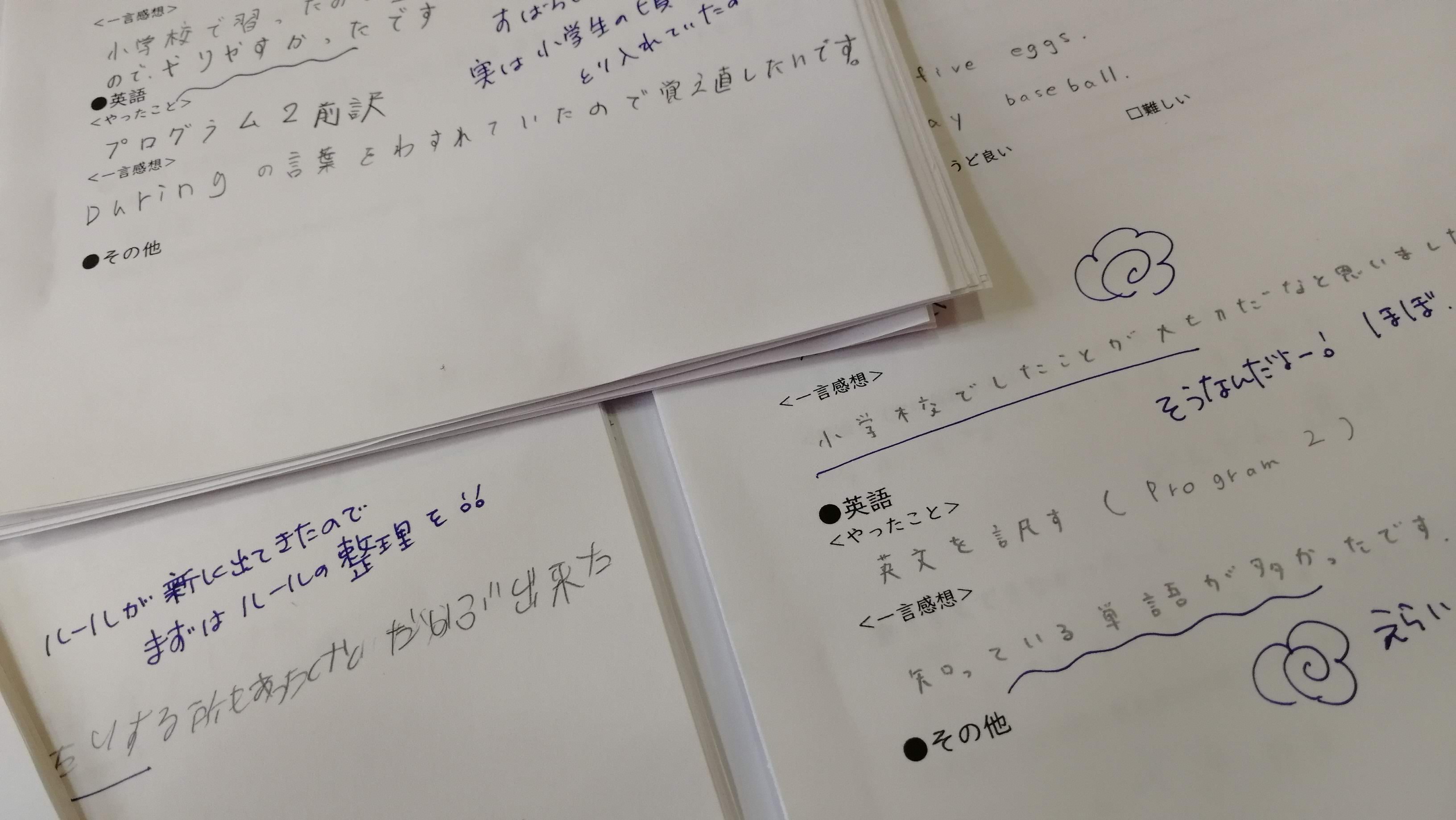 今年度から、中学生クラスの日報をプリント形式にしてみました。