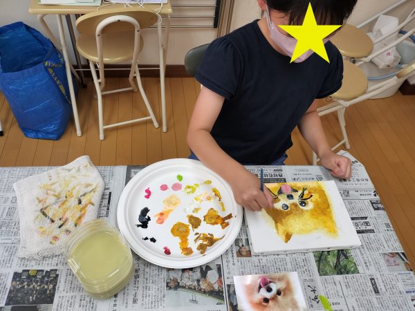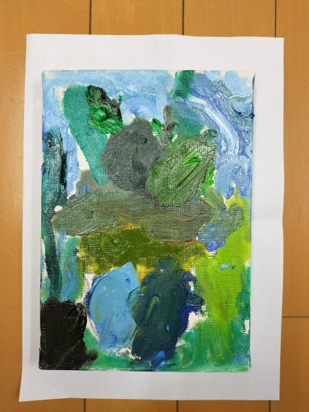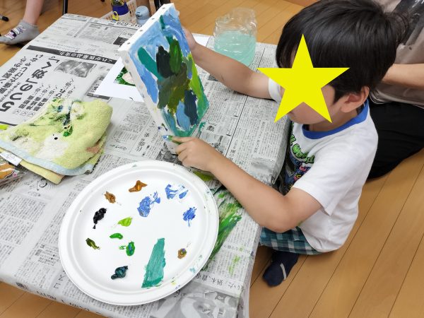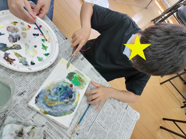 Rちゃんの弟君、年長さんも初めての油絵にチャレンジ♪