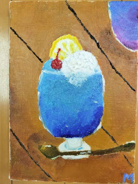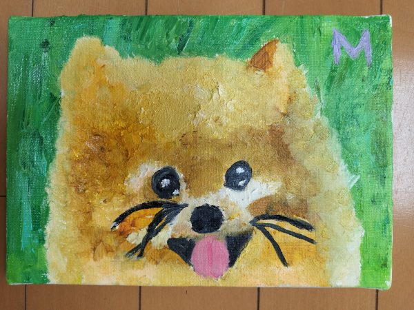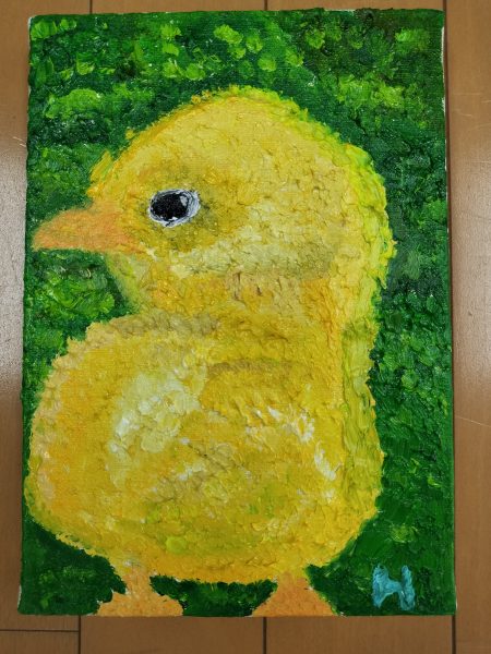 最初は筆で色を置いて、背景をぬってからペインティングナイフや竹串で、ていねいに仕上げていきました。