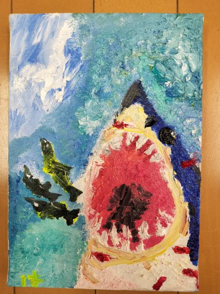 周りの色を迷ったのですが、海らしいけど、ジョーズと色が被らないようにがんばりました。