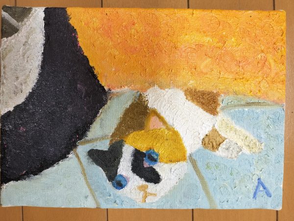 背景はパレットナイフで芸術家っぽく仕上げました!
