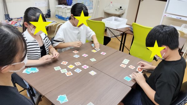 夏休みボードゲーム第一弾は4年生クラスから♪普段は使わない頭の部分を使うのだ~!
