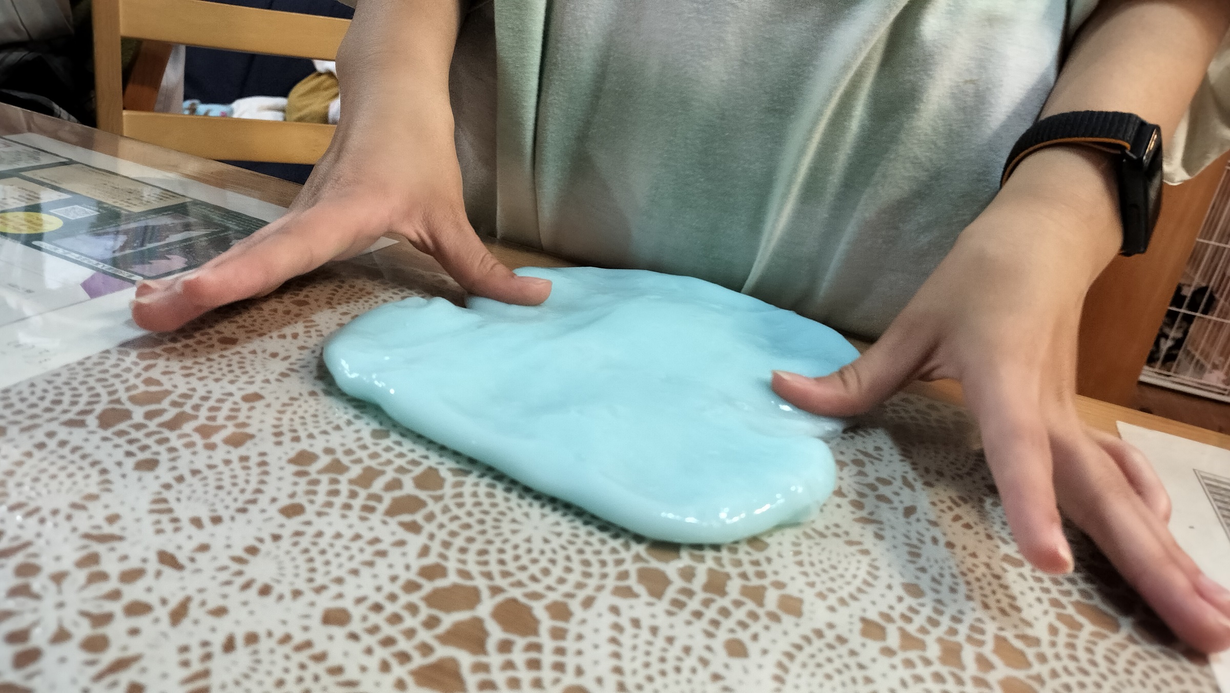 この週末は地元の神社で夜店があり、次女さんがスライムをGetしてきました。