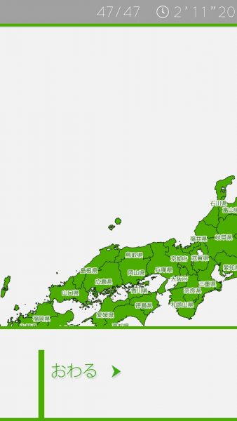 都道府県の配置は全部分かっている私ですが、操作に慣れなくて、もたもたやってたので、2分超えています。
