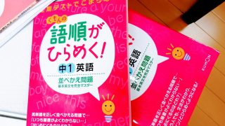 写真の中1英語のワーク、ばりばり進めています!